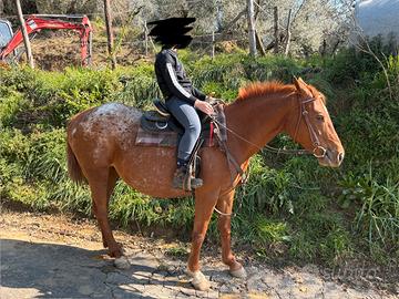 Vendo cavalla con puledro. cavalla quarter x appalosa di 9 anni tutti i documenti in regola la cavalla è adatta a tutti principianti e non attualmente montata da un bambino la cavalla è domata alle 3 andature nessun tipo di paura la cavalla non ha vizi è disponibile qualsiasi prova anche con veterinario di fiducia (cavalla scalza) . per qualsiasi tipo di informazione 3387813991