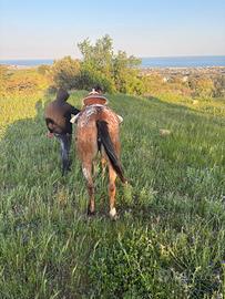 Vendo cavalla appalosa originale Età: 4 anni La cavalla è tranquilla in passeggiata sola e con altri cavalli La cavalla non morde , non scalcia da i piedi tranquillamente Scambio con : cavalli,puledri , bovini e ovini
