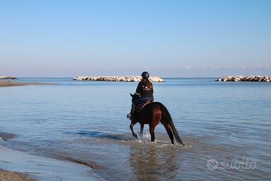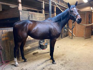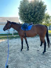 Disponibile cavalla purosangue inglese di 6 anni Circa 165 al garrese Carattere dolcissimo, buonissima con le persone e con gli altri cavalli Regolare in piano e calda sul salto, no principianti. Lavoro in piano, passeggiate, avviata al salto e al cross. Infermabile sul salto, buone prospettive per categorie brevetto. Nessuna cattiveria o scortesia. Visita non perfetta per una corba ad un garretto ma può comunque svolgere qualsiasi tipo di lavoro, non ha limitazioni, è dritta e pari nei movimenti. Ha il ballo dell'orso facilmente gestibile facendola uscire in paddock. In regola con vaccinazioni, coggin, vermifughi, denti, ferrature. Prezzo 3500 trattabili Zona Adria (RO) - Veneto Per info whatsapp 3206707381