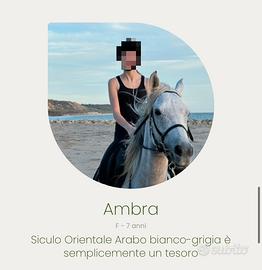Vendo questa splendida cavalla siculo orientale arabo , usata solo in Passeggiata in Maneggio " L'Operammare" abituata ad uscire a gruppo da sola .Potete guardare i video su Instagram, cercando Loperammare . Vendo soltanto per cambiare tipologia di Cavallo. Cavalla brava come vedete anche con i bambini. Per qualsiasi chiarimento, solo se si è interessati contattatemi al 339 47 13 600.