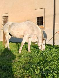La cavalla si cede con sverminazioni effettuate e documenti apposto, non ha paura di niente va a sella, carrozza da sola o pariglia.