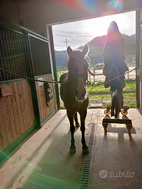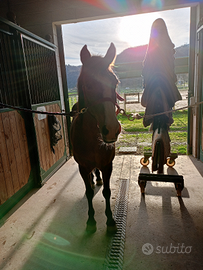 Cavalla di 16 anni mezza pony e mezza quartier buonissima viene da una scuola di equitazione base ,adatta ai bambini ,molto docile .