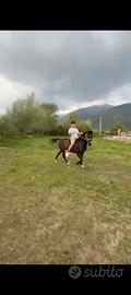 Vendo cavalla alta circa 130 va a sella atachi e salta ostacoli super brava brava specialmente con bambini documenti OK la vendo x mancanza di tempo