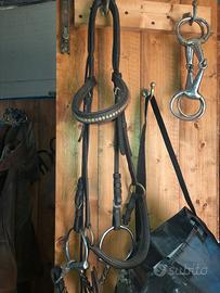 Vendo per fine equitazione una sella inglese,un pettorale nuovo, pqrqschiena , una bassa testa, testiera ,due morsi ,sottosella 2,più una coppia di Speroni inglesi,due elastici da lavoro..Prezzo 200 euro.....