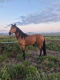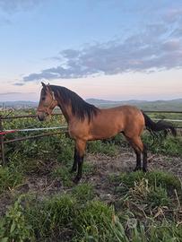 Vendo cavallo andaluso baskin con documenti italiani in regola ( no spagnoli) di 3 anni e mezzo, altezza al garrese 1,63 circa. Il cavallo è sdomo ma cammina tranquillamente alla corda ha un carattere tranquillo e dei movimenti spettacolari. Astenersi perditempo e curiosi, rspondo solo alle chiamate Il prezzo è trattabile dopo visione.