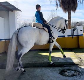 Vendo straordinario Stallone Andaluso con Documentazione Ancce, proveniente dalla Yeguada La Yedra, 8 anni ed una taglia di 170 cm, morfologia e movimenti spettacolari, molto barocco con folte crini, ottimo carattere ben montato adatto anche ad un bambino. Un esemplare di gran qualità. Per maggiori informazioni solo contatto telefonico 3482559783.