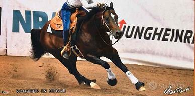 Quarter americano anni 4. Castrone. Documenti APA ma possibilità di fare i documenti originali quarter avendo entrambi i genitori documenti originali. Padre ROOSTER IN SUGAR e madre PEPPY ELLEN, visibili nelle ultime due foto. Cavallo da reining e cutting. . Inizio lavoro con passo, trotto e galoppo, Struttura piccola ma possente. Prezzo €. 4.000,00.contastti telefonici o whatsapp al 3491406070