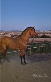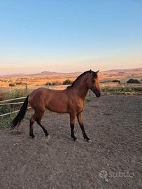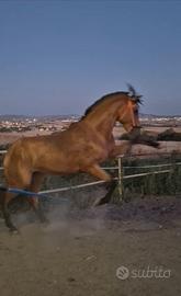 Vendesi stupendo cavallo andaluso di 35 mesi sdomo. movimenti eccezionali, colorazione baskin, altezza 1.62 circa. documentazione italiana in regola. Nell'ultima foto e visibile il padre dalla particolare colorazione oro proveniente dalla yeguada Bertin Osborne. Astenersi perditempo e curiosi, rispondo solo alle chiamate e non mando ne foto ne video, chi è interessato lo viene a visionare di presenza. Prezzo trattabile dopo visione.Grazie