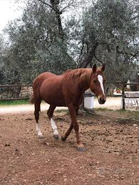 Vendo, per mancanza di tempo Cavallo Anglo-arabo anno: 2007 170cm al garrese Castrone Adatto sia al lavoro in piano che a salto Possibilità di prova o video Non fa cattiverie, adatto a persone con un minimo di esperienza. Zona Sannicola Prezzo 1.500