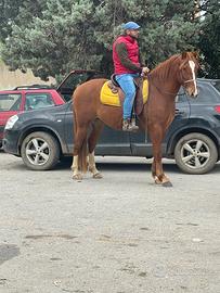 Castrone di 3 anni e mezzo , non adatto a principianti, altezza 1.65 , abituato a stare fuori , domato alle 3 andature ma ancora da definire , perfettamente in salute