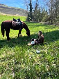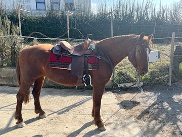 Vendo cavalla di 10 anni, Quarter x Avelignese. La cedo esclusivamente perché cercavo un soggetto adatto anche a principianti assoluti e bambini, mentre questa cavalla è più indicata per chi ha già un minimo di esperienza. È tranquilla da terra, gestibile e abituata a stare sellata e in ambiente esterno. Montata richiede però un cavaliere con un po' di sicurezza, quindi non adatta a chi è completamente alle prime armi. Ideale per passeggiate e per chi ha già un livello base e vuole un cavallo con cui crescere. Non ha timore di macchine, camion, moto ecc... Altezza circa 1.55. Contattare solo se realmente interessati.