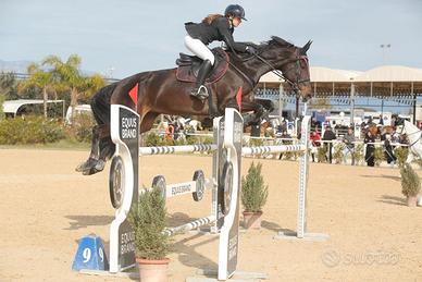 Vendo cavalla di 11 anni impegnata in categorie 2°sanissima e bravissima sia montata che a mano, ha saltato fino alla 135 co una junior, visita ok disponibile per qualsiasi prova. Si vende per mancanza di tempo. Contatto preferibilmente con messaggio