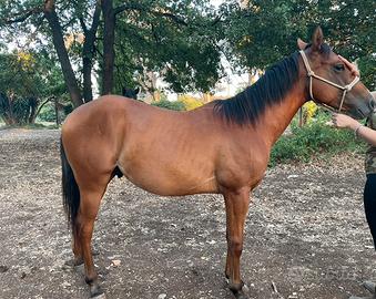 Di 20mesi alto 140 papà quarter mamma paint ,già addestrato da terra buonissimo nessun tipo di scortesia , alza i piedi si fa spazzolare , gira al tondino e sale sul trailer senza problemi,come un cavallo adulto!
