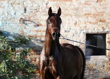 Vendo splendido esemplare di cavallo purosangue arabo, nipote di Ajman Moniscione. Si tratta din una femmina nata del 2012 da Alim Ps e Petit PS. Manto di colore baio. Non domata.