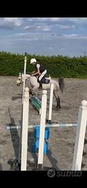 Esce in passeggiata e sale e scende dal van tranquillamente. Non fa scortesie né da terra né montato. Fa già percorsi di salto ostacoli, con margine di crescita.