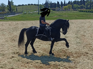 Vendo stallone Frisone linea barocca con documento olandese giallo verde, 19 anni. Cavallo bravissimo, tranquillo, sia a sella che carrozza, esegue figure di alta scuola. Prezzo trattabile se veramente interessati, no perditempo.