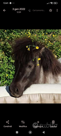 Cedesi solo a persone amanti animali , mini horse olandese con documenti e passaporto, intero ma buonissimo con tutti . Grande come un cane di grossa taglia , salute perfetta , diventa chiaro testa e zampe nere in estate e scuro in inverno .