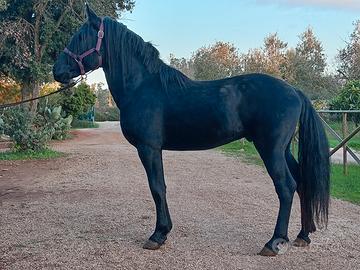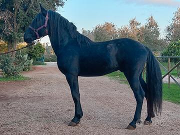 Alto 157 cm al garrese, è un cavallo molto equilibrato dal carattere gentile e disponibile al lavoro,inizio doma.