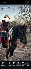 Vendo pony stallone pezzato 13 anni senza vizi,adatto al salto, passeggiate, porta anche il calesse. Nessun problema in campo con altri cavalli.Molto bello ed educato criniera lunghissima per maggiori info3470246726