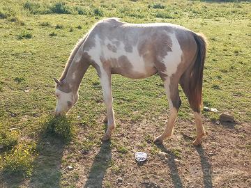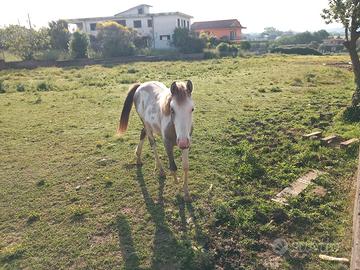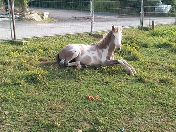 E' un puledro di 10 mesi. Nato da padre Paint (padre con documento) e madre Quarab. Ha un occhio color ghiaccio e uno marrone scuro. Colore mantello Buckskin Tobiano. Per altre foto e video chiedere in privato . Sito in zona Ferentino (FR). SOLO PER INTERESSATI