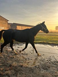 Purosangue inglese castrone di 4 anni,altezza al garrese ora 1.70. Domato alle tre andature,usato a fare prevalentemente passeggiate sia da solo che con altri cavalli. Sta cominciando imparare a fare bassi salti. Non fa cattiverie,non morde,cavallo molto buono.