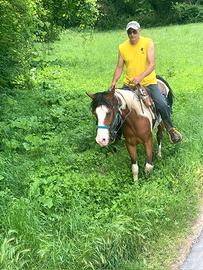 Quarab di 5 anni. Cavallo bravo e molto divertente. Docile ed affettuoso. Bravo in campo e in passeggiata. Non ha problemi a stare con altri cavalli.