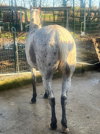 Vendo stupenda cavalla femmina appaloosa x Quarter anni 6 altezza al garrese 1.55 struttura bellissima, documenti APA e coggin test in regola (NO DOCUMENTI AMERICANI), appena ferrata e sverminata,cavalla con ottime manovre della monta americana,cambi di galoppo appoggiate laterali retromarcia, super anche nei trekking passo veloce e sicuro non conosce paure macchine trattori e moto perfetta anche per lezioni in maneggio! Abituata a uscire da sola oppure in compagnia di altri cavalli,sale tranquillamente nel trailer e van!