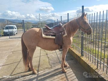 Vendo bellissima cavalla anni 11 incrocio Quarter x haflinger altezza al garrese 1.52 documento Apa e coggin test in regola ferrata e sverminata grossa struttura,cavalla ottima per lunghi trekking e lezioni in maneggio non conosce paure macchine trattori moto ecc.. ideale per qualsiasi cavaliere anche principianti,esce tranquillamente in passeggiata da sola oppure in compagnia di altri cavalli, abituata a salire nel trailer e van, qualsiasi prova veterinaria che montata!