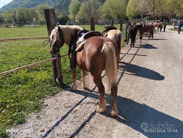 Vendo bellissima cavalla femmina anni 11 razza haflinger altezza al garrese 1.50 struttura robusta e rustica documento Apa e coggin test in regola appena ferrata e sverminata,cavalla ideale per qualsiasi cavaliere anche principianti e bambini perfetta per lunghi trekking non conosce paure macchine trattori e moto ecc.ideale anche per lezioni in maneggio, abituata a uscire da sola oppure in compagnia di altri cavalli,sale senza problemi nel trailer e van può stare in box oppure al paddock, qualsiasi prova veterinaria che montata! VENDO E NON SVENDO PERCHÉ NON HO BISOGNO DI SOLDI! NO COLLEZIONISTI DI FOTO E VIDEO SE VI INTERESSA VENITE A VEDERLA E PROVARLA! NON ACCETTO PERMUTE! SOLO CONTATTO TELEFONICO NO MESSAGGI NEL ANNUNCIO TROVATE IL NUMERO DI TELEFONO! SIMONE 339.1568198 EURO 2800 NON TRATTABILE POSSIBILITÀ DI ORGANIZZARE IL VIAGGIO IN TUTTA ITALIA A CARICO DEL CLIENTE