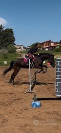 VENDO cavalla morella di 10 anni alta 1.80 al garrese di grossa struttura attualmente indirizzata per il salto ostacoli e cross ma può essere indirizzata anche per il dressage bravissima in passeggiata sia da sola che in compagnia adatta anche per i principianti, non ha fatto gare per ora ma ottima per categorie 100/110 la cavalla non ha vizi né problemi di salute si trova ad aprilia (LT) valuto scambi