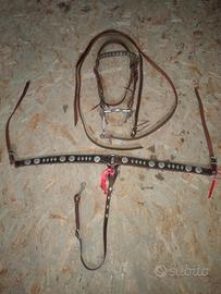 Modello barrel misura 15, misura americana Quorter completa di tutto vedi foto in più aggiungo una seconda testiera e speroni. SPEDIZIONE DISPONIBILE.