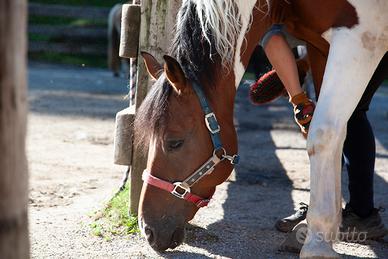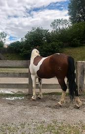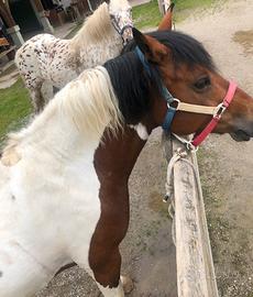 Cavallo pezzato di 9 anni, particolarmente adatto a passeggiate e trekking. Carattere simpatico e buono con gli altri cavalli, abituato sia box che paddock. Disponibile per prova. Si vende per cambio tipologia.