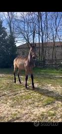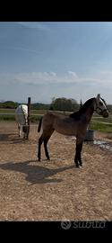 Cavallo spagnolo di 10 mesi, giovane e promettente. Mantello baio con arti scuri, struttura armoniosa e movimenti eleganti, già ben proporzionato per la crescita. Carattere vivace ma gestibile, abituato al contatto umano e all'ambiente di scuderia. Ideale per chi cerca un soggetto da crescere e formare secondo le proprie esigenze. Privo di documenti ma con libretto APA, COGIN e vaccinazione. Per ulteriori informazioni (video o altre domande) o per vederlo dal vivo, contattami.