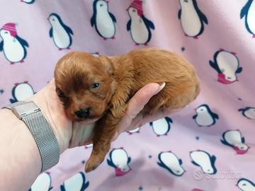 Cavapoo cucciola femmina nata il 30/01/2026 Madre Cavalier king Charles Spaniel Ruby Padre Barboncino nano red I nostri cuccioli vengono consegnati con : - Vermifugo fatto - Antiparassitari interni ed esterni fatti - due vaccini - Microchip - Libretto sanitario - Certificato di buona salute da parte del veterinario - Abituati a sporcare su la traversina - Ben socializzati - Abc del cucciolo - Cibo per i primi tempi - Prima toilettatura fatta - Certificato del deposito del campione biologico dei genitorI - Test genetici per malattie ereditarie dei genitori - Certificato del grado di lussazione della rotula dei genitori - Albero genealogico dell'allevamento Su richiesta possiamo consegnare i cuccioli in tutta Italia e all'estero.