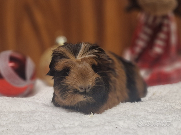 Allevamento amatoriale I Piccoli delle 3 Piume a Broni Pavia cede cavia Coronet black & red femmina con pedigree. Mamma Sheltie black & white, papà Coronet black.