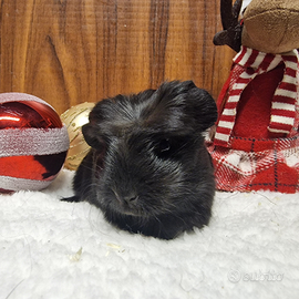 Allevamento amatoriale I Piccoli delle 3 Piume a Broni Pavia cede cavia Coronet black self maschio con pedigree. Mamma Sheltie black & white, papà Coronet black.