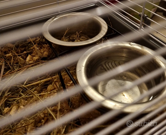Cavia Peruviana - Porcellino d'India cucciolo con gabbia e ciotole per cibo ed acqua.