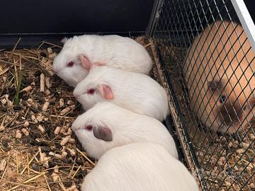 Cedo 3 cuccioli di cavie, genitori california, padre crema, tutti e tre bianchi, 2 femmine ed un maschio. Consegna a fine mese al compimento dei 2 mesi