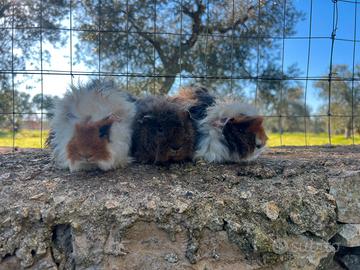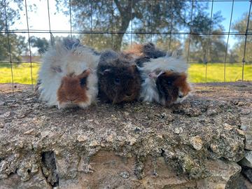 Cedo, come da titolo, 3 cavie peruviane razza merino. Un maschio e due femmine gravide prossime al parto. Animali sani, alimentati con pellet, fieno, erbe e verdura fresca. No perditempo ed affaristi. Massima serietà.