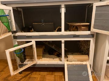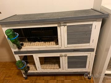 Conigliera da 120cm su due piani con tutti gli accessori che si vedono in foto: