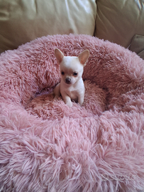Cucciolo bellissimo di chihuahua disponibile al compimento dei due mesi di età nato 30 agosto pronto dal 30 ottobre viene dato sverminato e vaccinato e certificato di buona salute maschietto biancocrema pelo corto sanissimo e purissimo selezionato da 18 anni genitori nonni bisnonni trisnonni di mia proprietà viventi chiedo e do max serietà