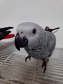 Disponibile un pappagallo cenerino coda rossa allevato a mano, seguito con massima cura fin dalle prime settimane. È completamente svezzato, abituato al contatto umano e alla normale vita domestica, molto docile e adatto anche a persone alla prima esperienza.