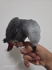 Disponibile bellissimo esemplare di cenerino coda rossa, allevato con cura e abituato al contatto umano. Pappagallo molto intelligente, curioso e di indole tranquilla, ideale come compagno affettuoso per chi cerca un animale parlante e socievole.