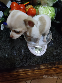 Subito disponibile cucciola di chihuahua mini Toy bianco e arancio di 3 mesi e mezzo, nata e cresciuta in ambiente famigliare, molto affettuosa e coccolona, adora addormentarsi sulle gambe, svermata doppia vaccinazione e microchip, per maggiori informazioni solo contatto telefonico grazie 3274999703