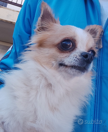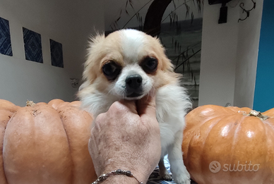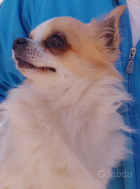 Maschio Chihuahua a pelo lungo, 4 anni, peso 1,8 kg, disponibile per monte.