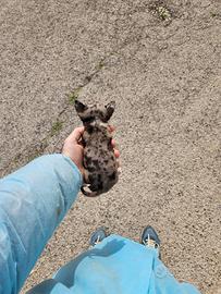 Pisciotta allevamenti dispone di cucciolo femmina di chihuahua blu merle,viene consegnata con vaccino sverminazioni antiparassitario microchip garanzia scritta libretto sanitario e fattura Per info Mostra numero