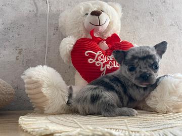 Disponibile bellissimo esemplare di cucciolo di chihuahua toy colorazione blu merle a pelo raso introvabile e rara, testa a mela e muso corto classico standard del chihuahua