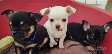 Cuccioli di chihuahua nati a fine novembre vendibili per fine gennaio completi di 2 vaccinazioni , sverminazione e microchip , e già addestrati per la traversina .. 700euro trattabili per altre info scrivere o chiamare all 340 3876505