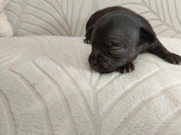 Piccolo chihuahua maschietto a pelo corto nato a metà marzo da genitori visibili cerca casa. Il cucciolo sarà affidato dopo sverminazione e primo vaccino.