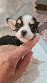 Disponibile in Allevamento cucciolo di chihuahua tricolore nero/bianco/crema che si consegna a due mesi, a febbraio. Consegna effettuata di PERSONA in tutta ITALIA.